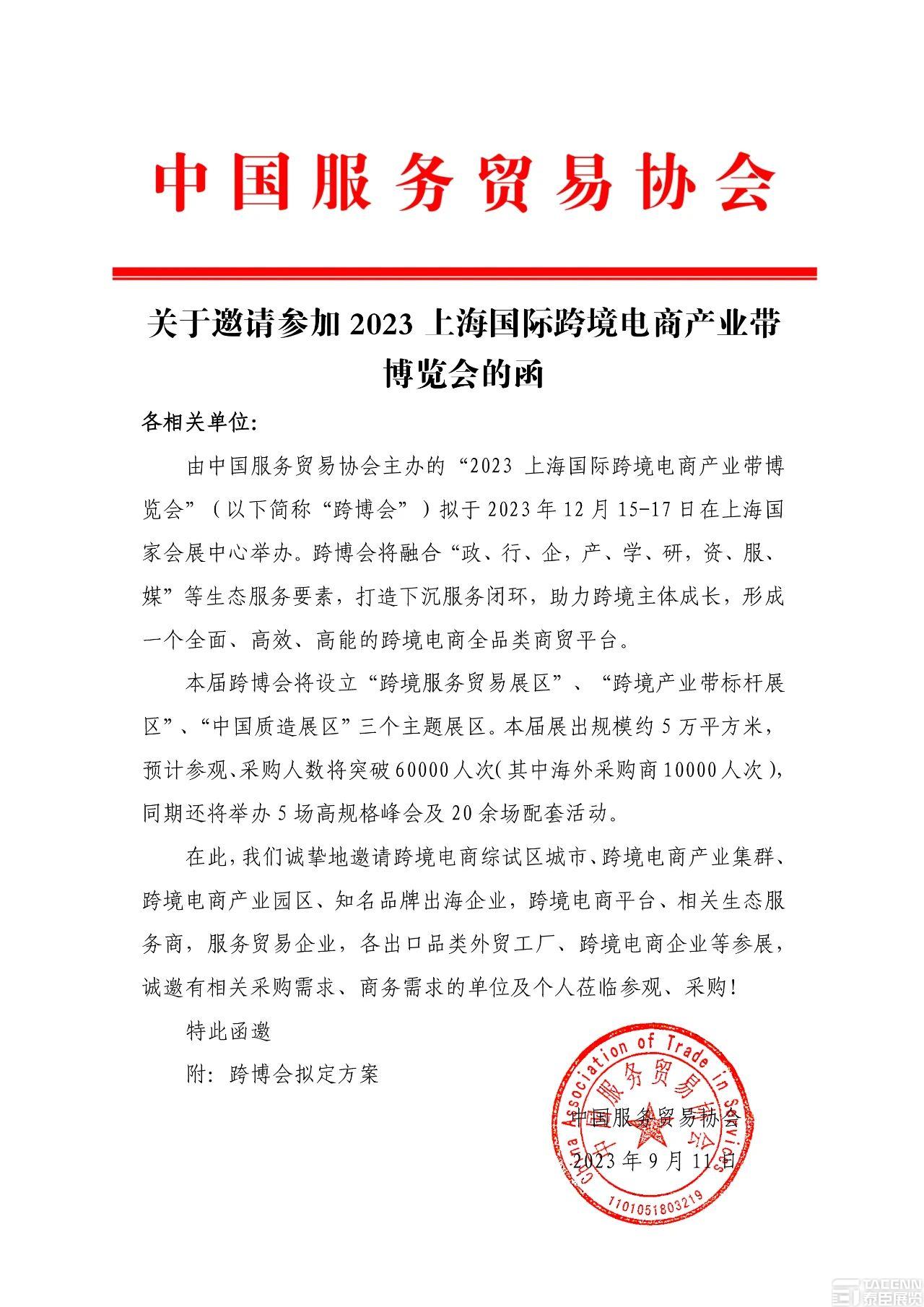 關于邀請參加2023上海國際跨境電商產業帶博覽會的函