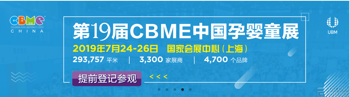 第19屆CBME中國孕嬰童展將于2019年7月24-26日在國家會(huì)展中心(上海)舉辦, 同期CBME孕嬰童食品展將于 7月25-27日在上海世博展覽館舉辦。
